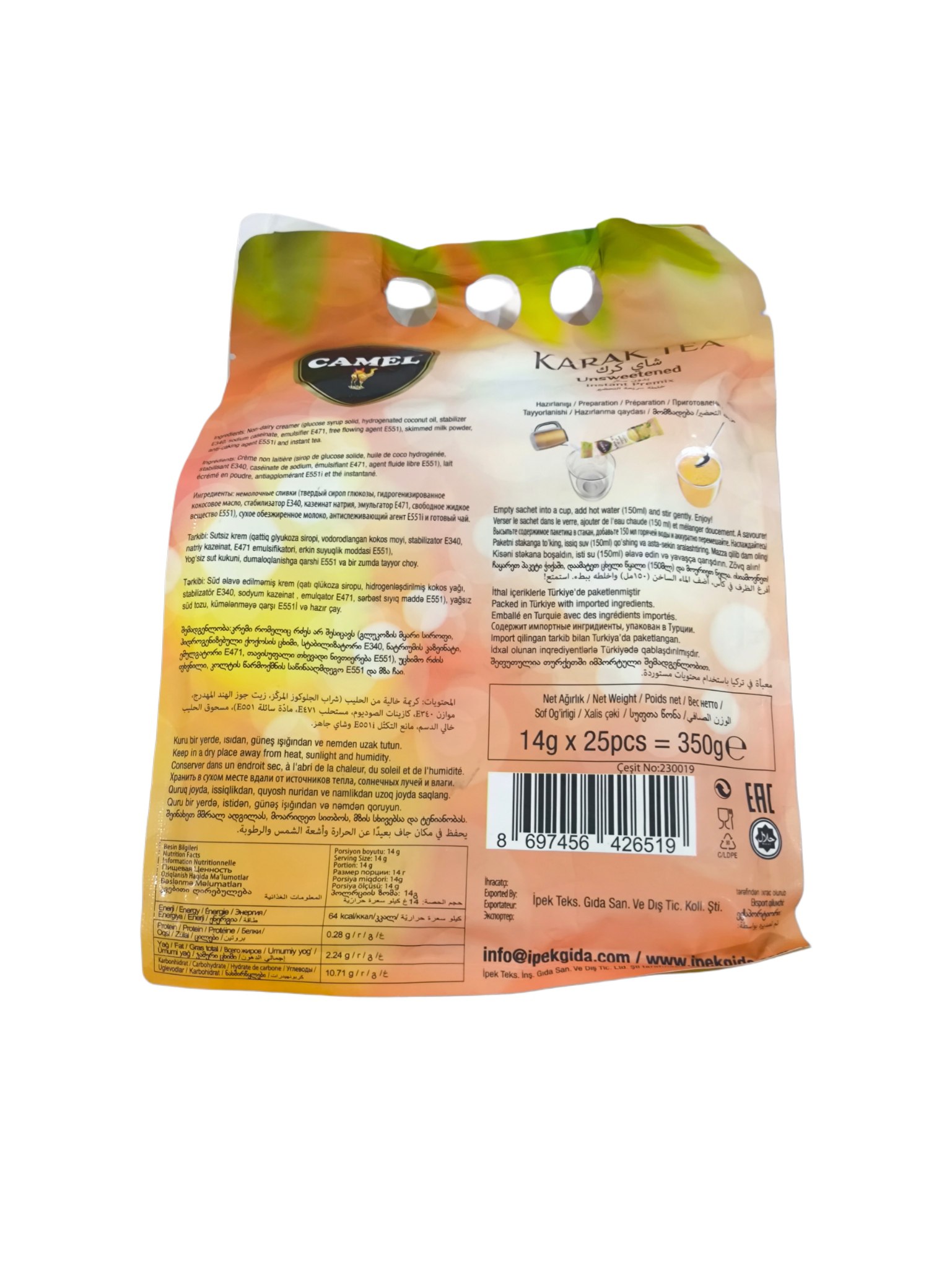 • وزن هر ساشه: 25 گرم